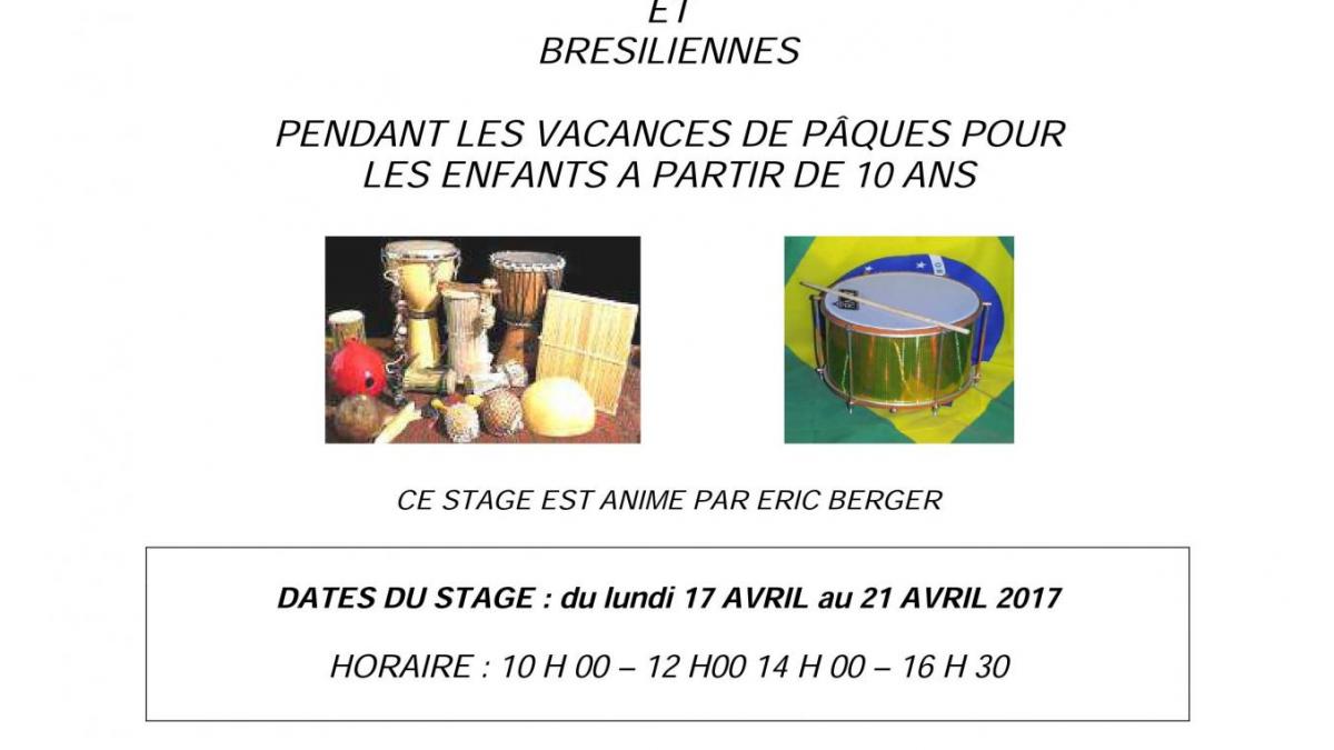 N'hésitez pas à l'inscrire à notre stage de percussions africaines et brésiliennes pendant les vacances de Pâques.
